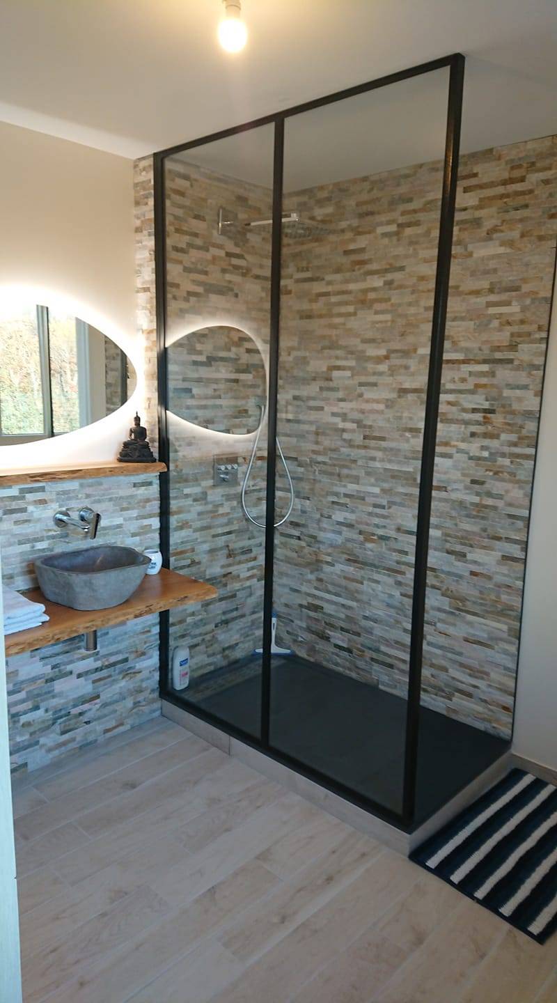 Pour cette salle de bains à Tassin-La-Demi-Lune, notre équipe a conçu une verrière en métal sur mesure pour répondre aux exigences du client :